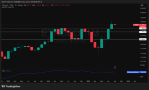 Conforme descrito em post anterior, a bitcoin não corrigiu por inteiro a queda (também relatada neste post) e podemos estar rumando no momento para uma corrida de baixa (downtrend), que poderá chegar próximo de $108k (cento e oito mil dólares). A estratégia aqui é observar se o indicador OBV acompanha essa queda, marcando saída de volume e informando que há fundamento na queda. Já marquei um pivot próximo de $107k e essa faixa de preços é crucial observar se há momentos de compra ou se a mesma se tornará uma resistência (visão mais pessimista possível).